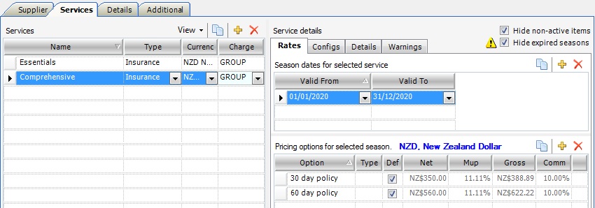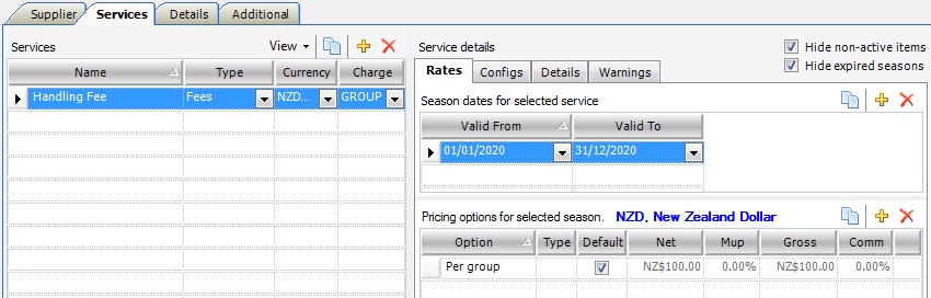 3. As the Charge Type is PAX the Type field in Pricing options for selected services is Adult, Child etc.