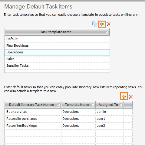 on the upper grid to add a new template. - Select the newly added template and add tasks to the lower grid the same way.