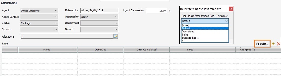 - Select Populate under the Tasks grid. This opens the Choose Task Template window