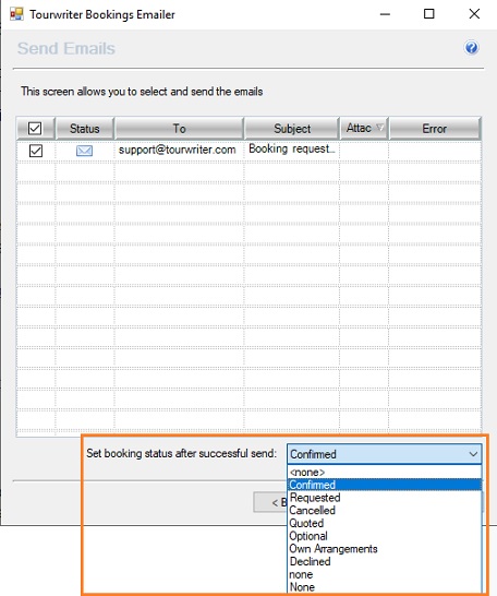 1. Select a booking status or keep it default, i.e. <none>, on the Booking Emailer screen