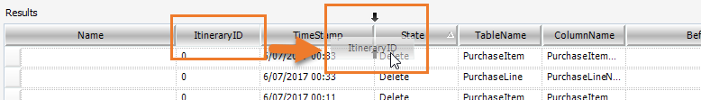 Field order can be changed by clicking on a field header and dragging it and placing it elsewhere. The field will be dropped in where the double arrows appear and once the mouse button is released.