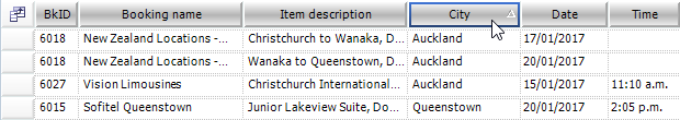 If you wish to order your Workspace by a particular field, such as City, click on that field header. A triangle appears on the far right of the field header – this indicates the Workspace is now ordered by City, in ascending order. If the field header is clicked again, the triangle becomes inverted which means the field is now displaying in descending order. Note that multiple fields can be ordered simultaneously by holding down the Shift key and clicking on an additional field/fields.