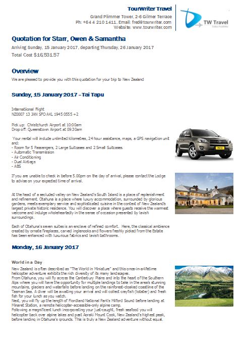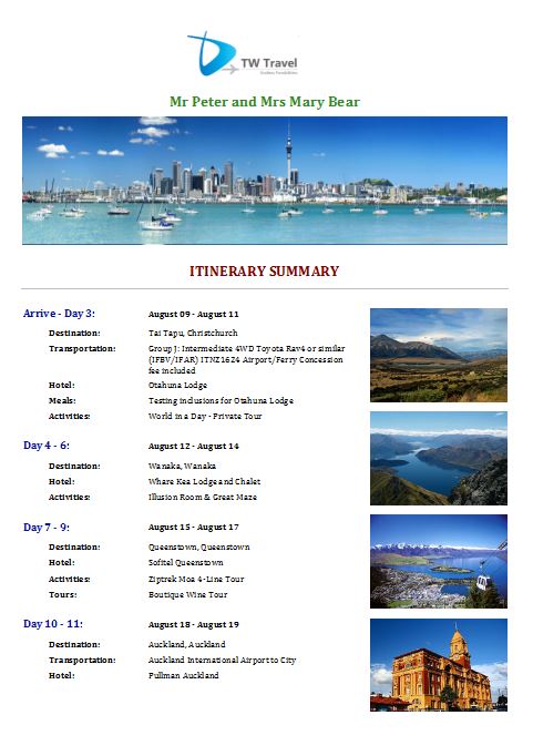 Free Trial Database – Standard Itinerary Template 1