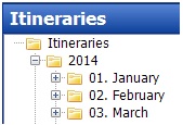 A good, clear folder structure for Itineraries and Suppliers is recommended. Common sorting methods for Itinerary folders include: by year of travel, with subfolders by month of travel, or by staff member in charge of that Itinerary. Itineraries will be automatically ordered alphabetically by itinerary name within each folder.