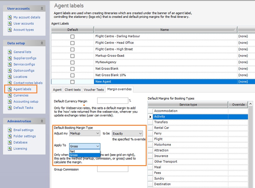 Note:- Since the Margin Adjustment applied to the new Agent overrides the itinerary margin adjustments, it is essential to verify your Margin Override preference. Once done, save the changes made to Agent Label setup before you add the Agent to an itinerary.