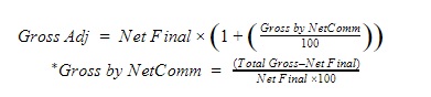 1. Finally, since the Agent Commission is only calculated off the Gross value, the Gross Adj valued as per the example above can be calculated as: