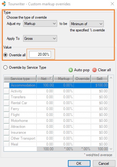 2. Under Default Booking Margin Type, you can apply your Markup override to either the Net value or the Gross value.