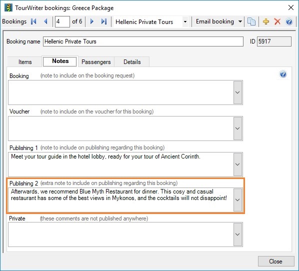 We have added a second Publishing Quick Note field to the Bookings Editor > Notes Subtab, which will allow you to add further information about a booking and display this in you clients’ quotations and itineraries.
