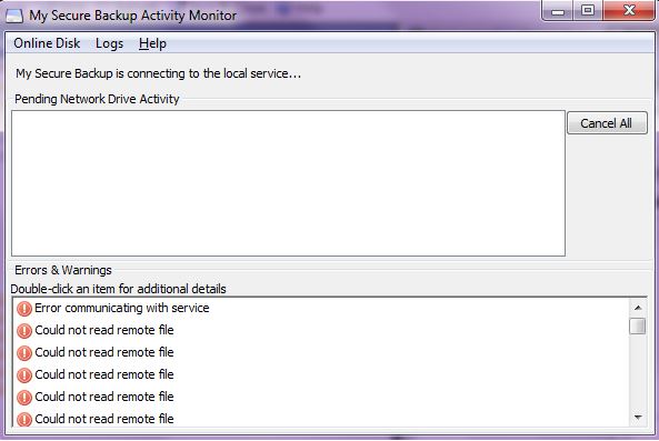 * Note – If you cannot delete the content of the cache folder, you might need to stop the My Secure Backup service. To do this, open the computer Services screen (Windows Start > Run, and type services.msc), find the service called MySecureBackup, right click on it and choose Stop.