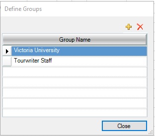 1. Selecting Manage Groups opens the Define Groups window where you can add groups.