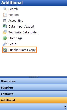 1. Click Additional on the Menu (far left) > Supplier Rates Copy to open the Copy Rates Tab. Additional Side Bar