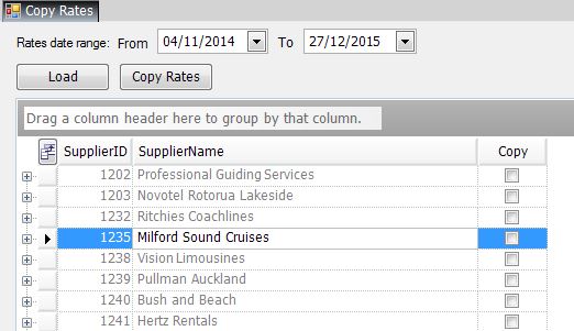 4. To copy all seasons and rates that fall within the search date range, simply click (tick) the box in the Copy column adjacent to the Supplier on the far right for the Supplier/s that require updating. Copy Rates