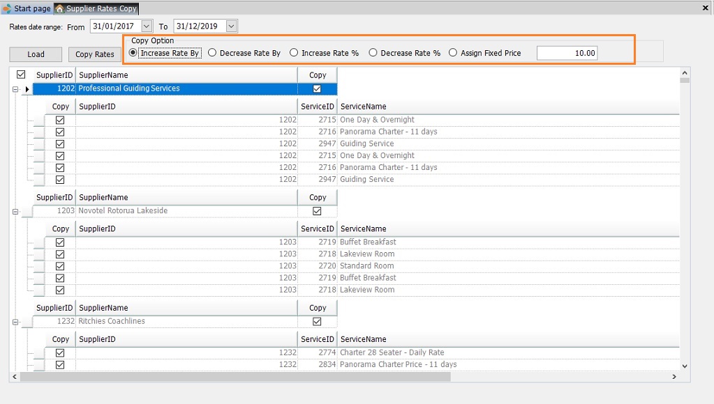 Increase Rate by: Use this field to increase the copied Supplier rate by a specified amount.