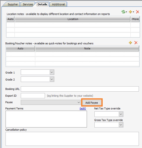 Please note that the Default payee for a booking will always be the Supplier itself, unless you’ve added Payees. If you will sometimes pay the Supplier direct, but sometimes book and pay through a third party (e.g. Ground handler) there is no need to add the Supplier itself to the Payees list. The booking’s Supplier name will be available from the drop-down list when you change the Payee for a booking.