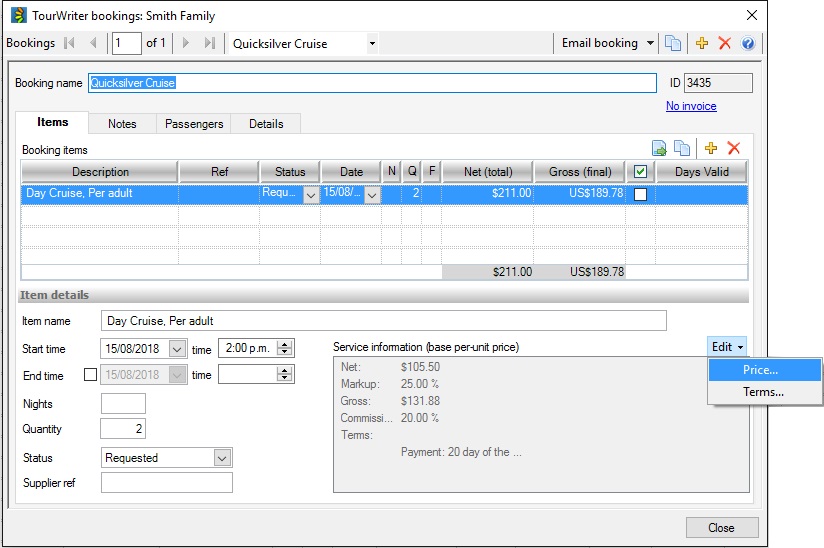 In order to use this feature, ensure that the booking includes a Qty (and Nts if applicable) before editing the Total Price.