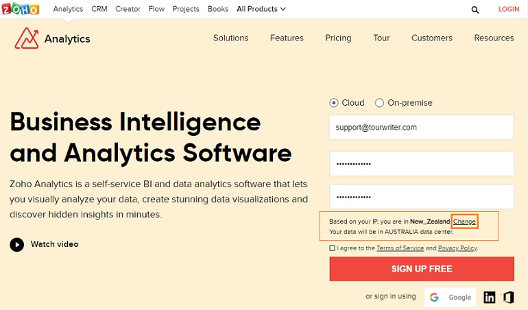 Signing up to Zoho Analytics