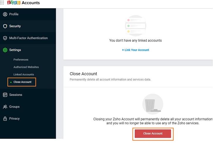 1. Under Settings, in the left panel, select Close Account.