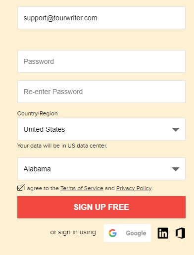 Note: Ensure you change the Country/Region to United States and Alabama before you sign up as detailed previously.