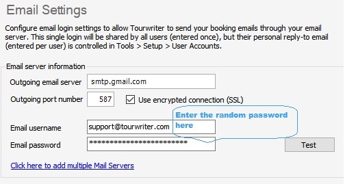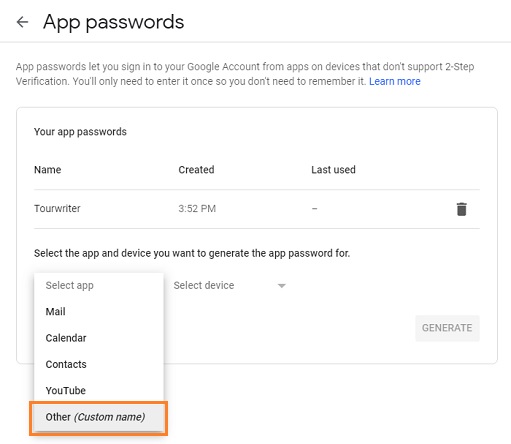 1. Select Generate. Google will generate a random password for Tourwriter.