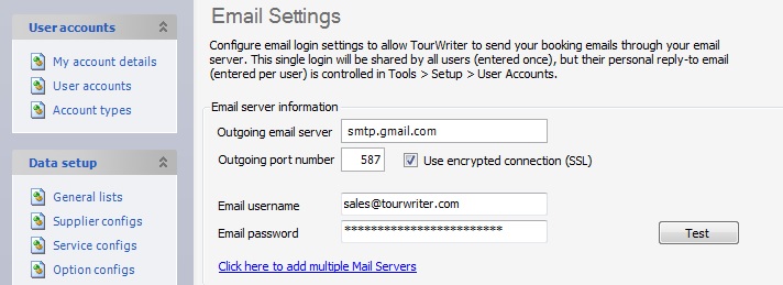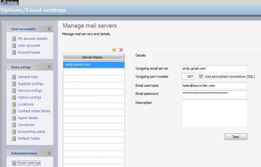 You may add multiple mail servers to Tourwriter, for situations where you cannot route all staff emails through one account (e.g. you operate under separate domains).
