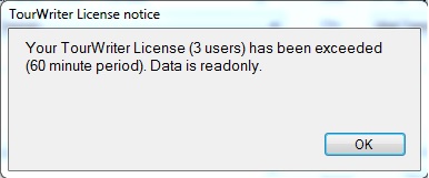 For the system to allocate available licenses​, all locked out users, who see the error message must close Tourwriter. Otherwise all future TW logins will be locked out even when there are free/available licenses.